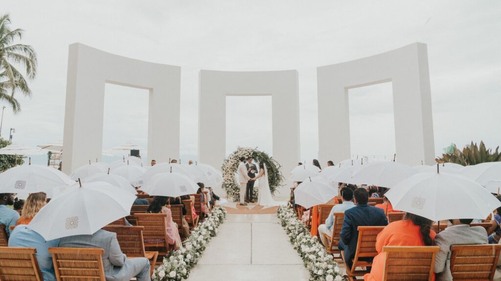 Situación común: especialmente en bodas al aire libre, confiar ciegamente en que el clima estará perfecto puede suponer un gran riesgo.