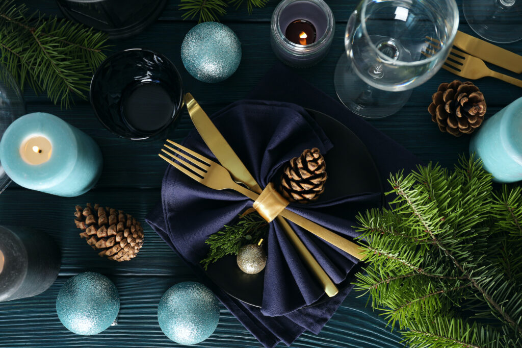 Para quienes buscan una Navidad con un aire más nocturno y sofisticado, los tonos profundos son la elección ideal. Azul marino, verde oliva y burdeos dominan esta tendencia, evocando cenas a la luz de las velas y atmósferas envolventes.